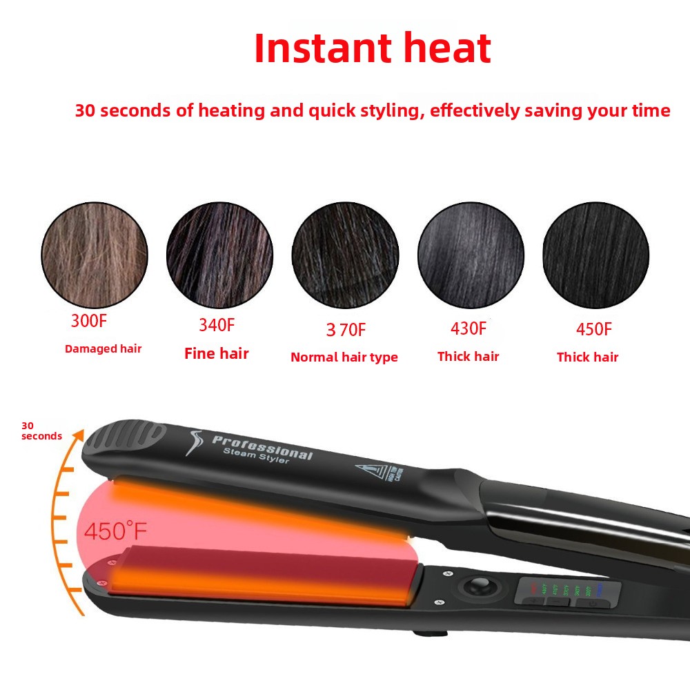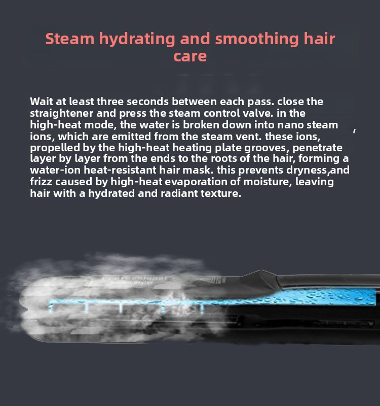 Obtenez des cheveux lisses et brillants en un seul geste grâce à cette pince lissante innovante équipée d'un système de vaporisation à vapeur. Parfaite pour tous les types de cheveux, elle combine la puissance du lissage avec l'hydratation de la vapeur pour des résultats professionnels à domicile.